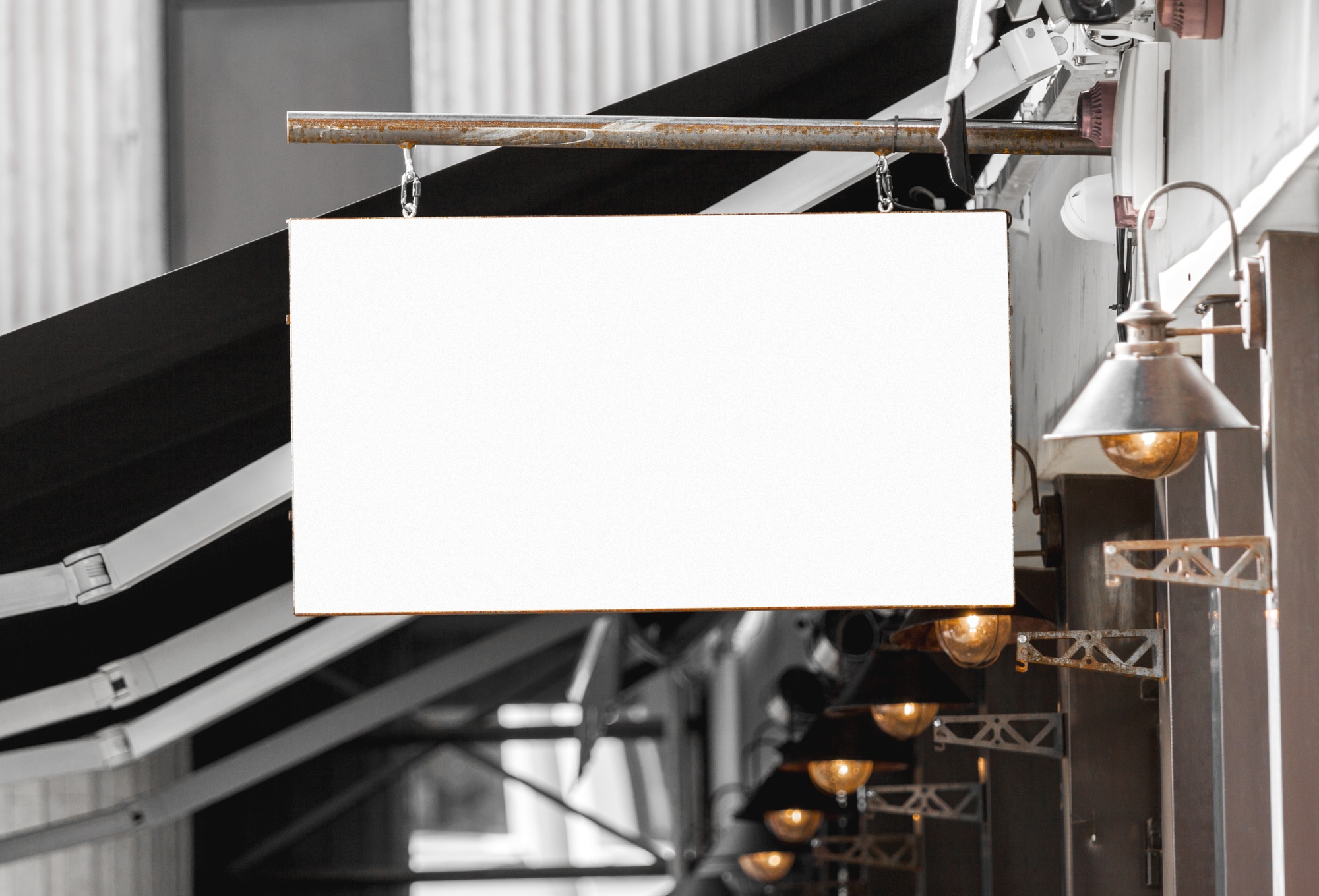 Restaurant or cafe blank outdoor business signage mockup to add company logo